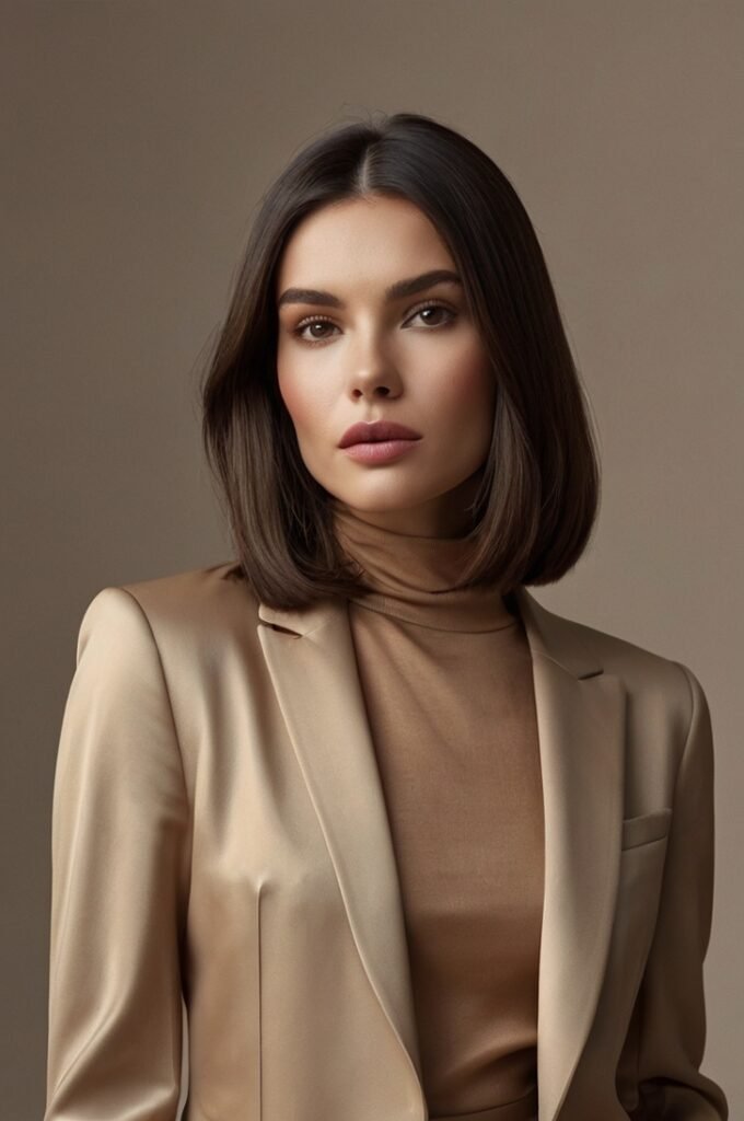 A shoulder-length blunt cut is a hallmark of old money style. This look is sleek, with no layers, creating a sharp and polished appearance. Pair it with a center part to maintain its classic charm.