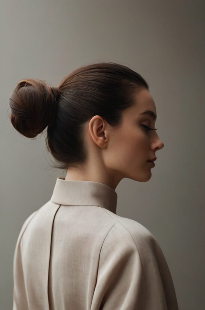 This neat, minimalist bun showcases the richness of brunette tones. Pair it with pearl earrings for a timeless, sophisticated look.