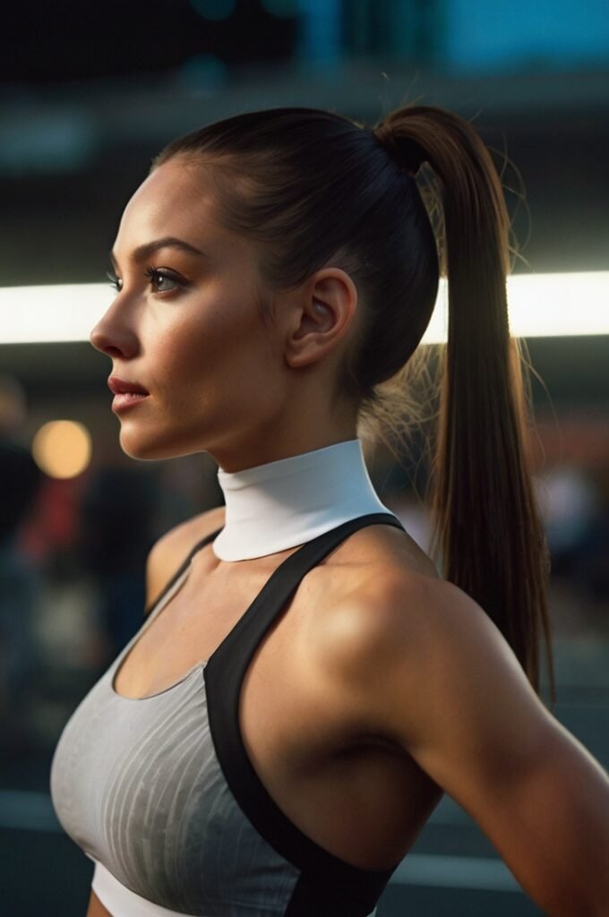 Sleek and pulled back, the high ponytail is a statement of controlled elegance. It works particularly well with glossy brunette hair.