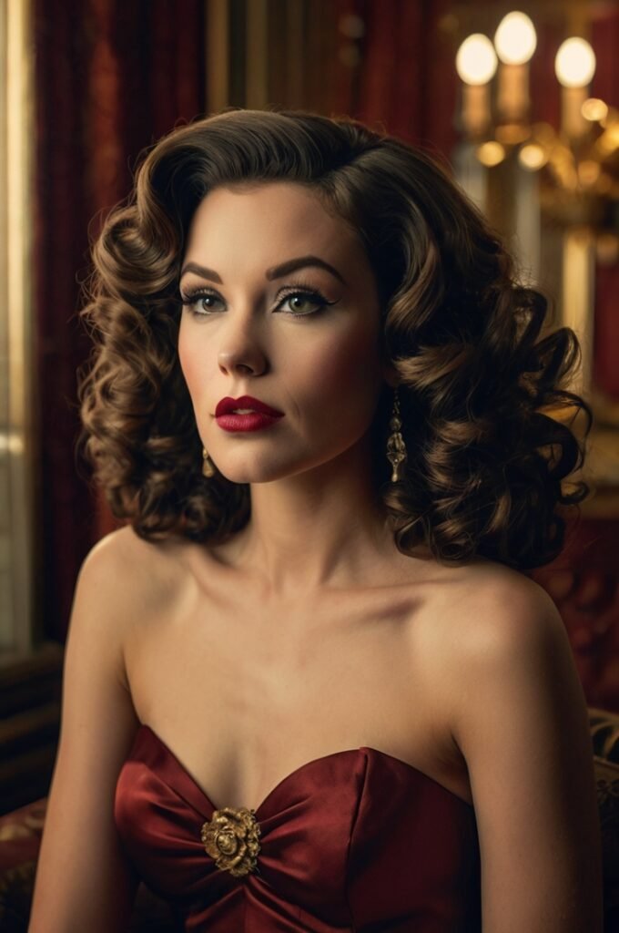 Gentle waves are perfect for showcasing the rich tones of brunette hair. A deep side part adds a touch of vintage elegance, making this style suitable for both casual and formal settings.