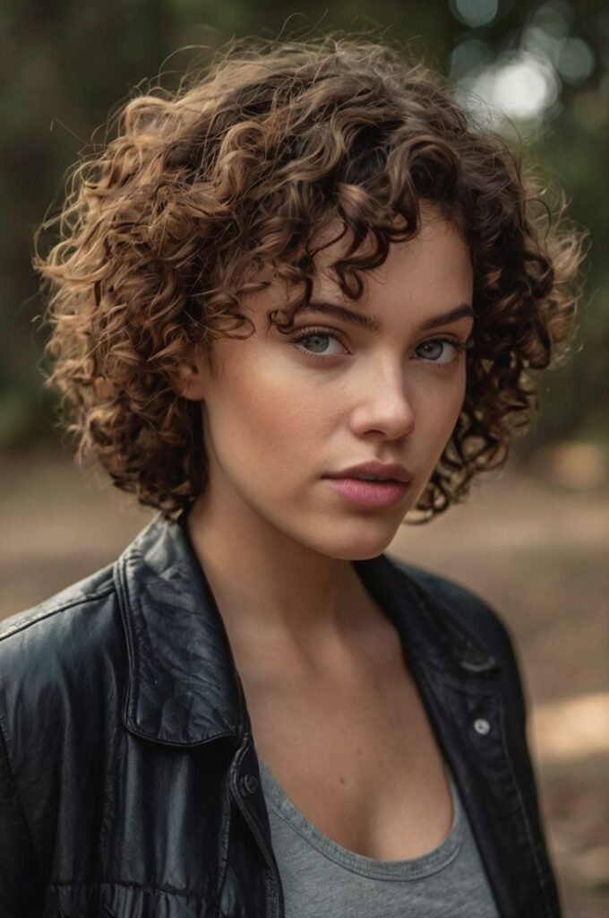 Natural curls shine with an ear-length cut, giving you a bouncy and lively appearance. This style is low-maintenance and perfect for curly-haired individuals.