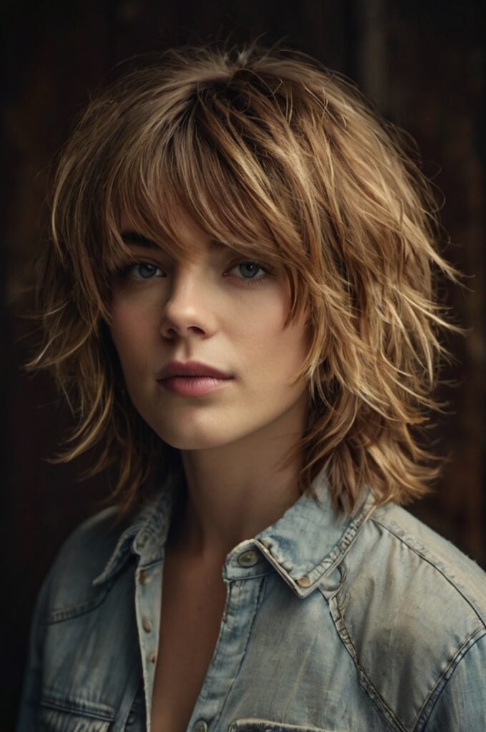 The shag cut features layers and texture, making it ideal for adding volume and dimension to thin or fine hair. It offers a carefree, rocker-chic vibe.