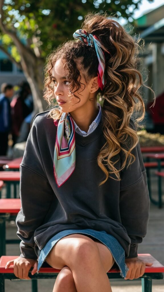 A high ponytail never goes out of style, and when paired with natural curls, it’s a show-stopper. This look combines simplicity with elegance, making it a go-to option for students.