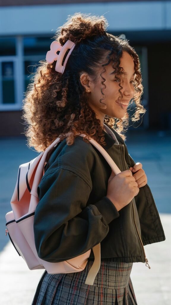 - Styling Tips: Choose pastel-colored, tortoiseshell, or metallic claw clips for a modern vibe. Spritz your curls with a curl-defining spray for extra volume. Add thin braided sections for a unique touch that stands out.