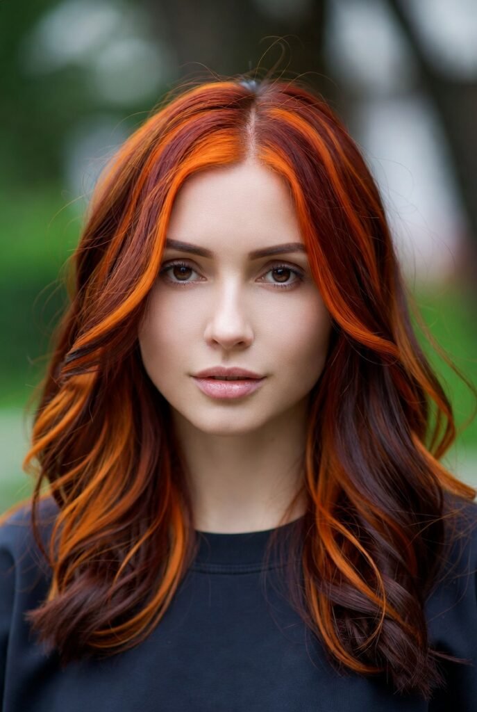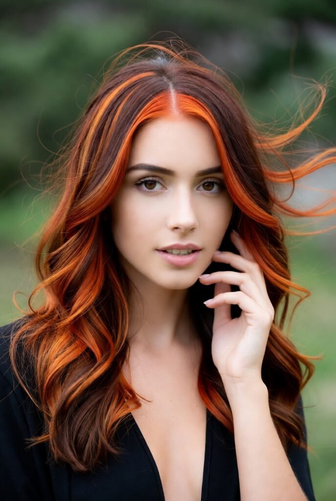Orange highlights or streaks bring a playful touch to any base color. These highlights can be blended or stand out for contrast.