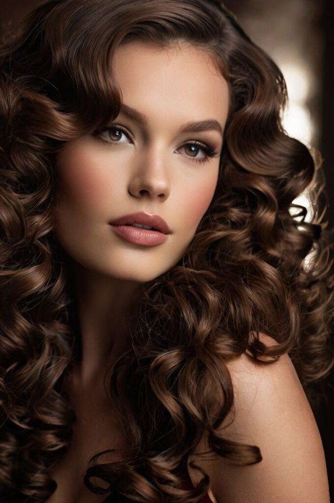 Inspired by vintage Hollywood, this style features large, polished curls that create an ultra-glamorous effect. The richness of brunette tones like chocolate and mocha adds to the dramatic elegance of this look, making it ideal for special events and red carpets.