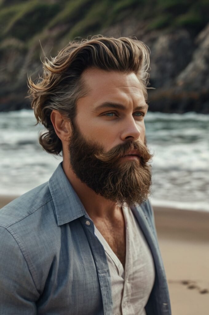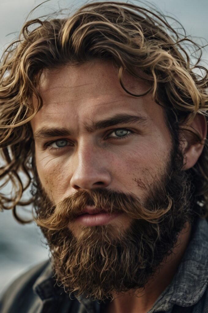 Messy waves create an effortlessly stylish look when paired with a natural, slightly untamed beard. This combination is ideal for outdoor enthusiasts and creatives.
