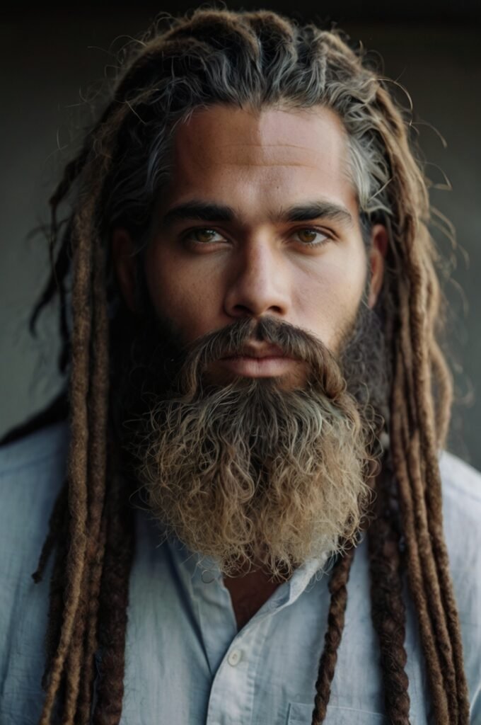 Dreadlocks are a cultural and stylish option for long-haired men, blending tradition and individuality effortlessly. Their intricate texture pairs seamlessly with a full beard, creating a striking and bold appearance. This combination offers a unique way to showcase your personality while standing out in any setting, from casual to formal occasions.