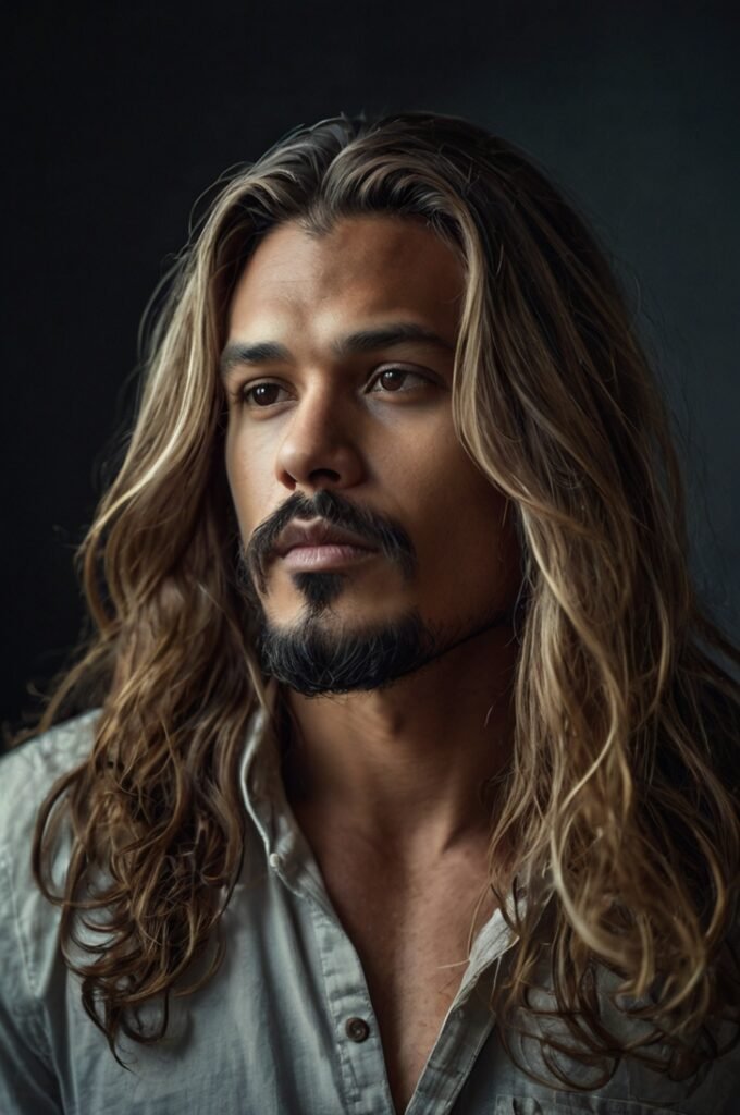 Long flowing hair paired with a goatee creates a distinctive and artistic vibe. This look is perfect for those who enjoy experimenting with their appearance.