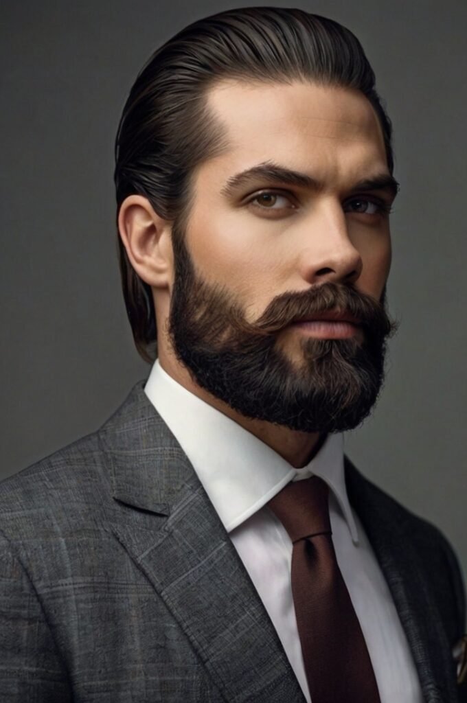 5. Slicked-Back Hair with Groomed Beard