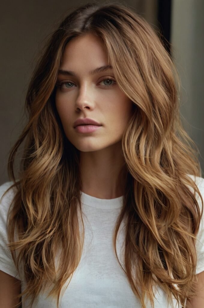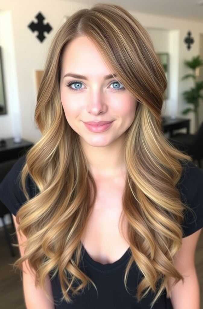 12. Subtle Money-Piece Highlights with Wavy Layers