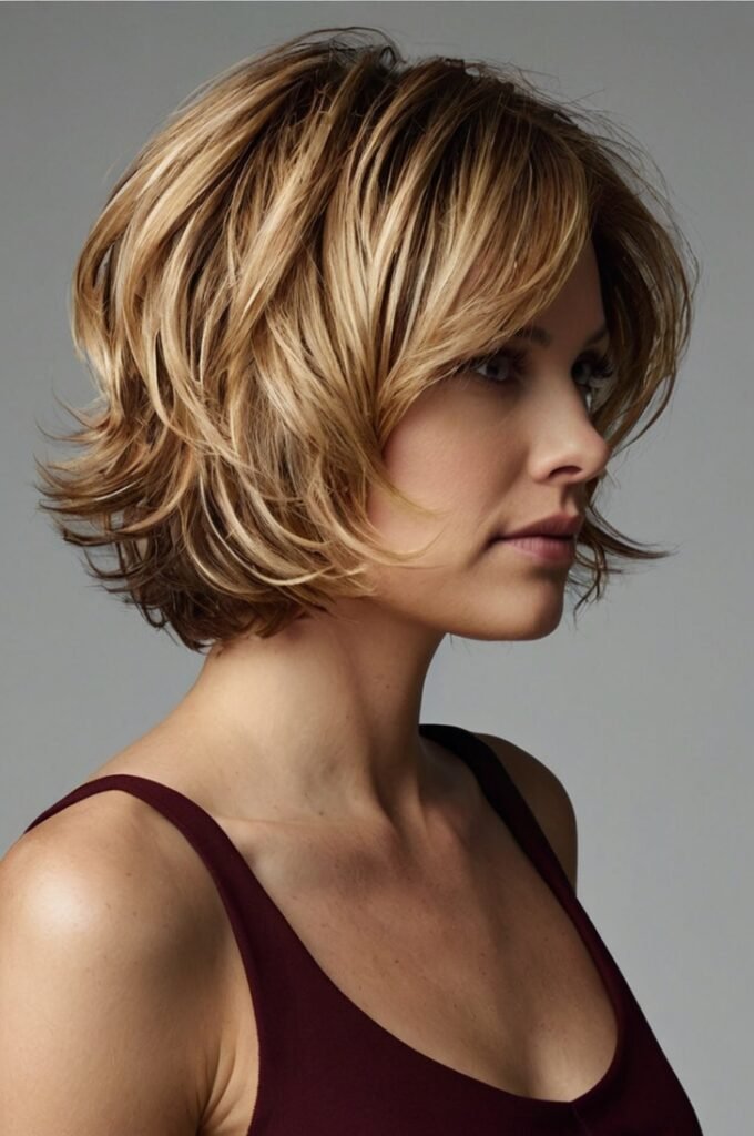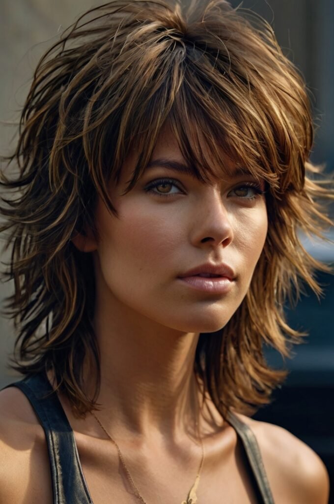 A shag cut with feathered layers creates an effortlessly voluminous look. The layers add depth and natural movement, while the tousled texture amplifies fullness. This low-maintenance style works well for those who prefer an undone, trendy look.