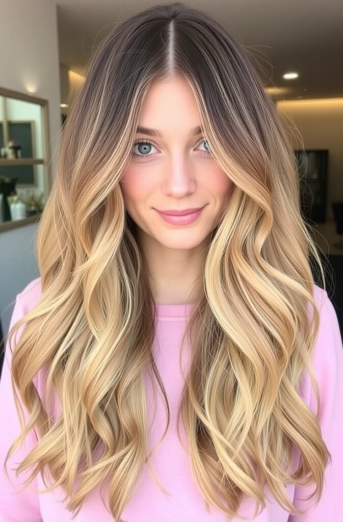 Strategic highlights around the face enhance depth and create an illusion of thickness. When paired with wavy layers, this style adds volume and brightness, making the hair look fuller and more dimensional.