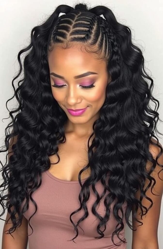 Not only is this hairstyle stylish, but it’s also practical. It’s a great protective style for textured hair, keeping the braids secure while allowing the curls to shine. You can elevate the look with beads, cuffs, or other hair accessories, adding a personalized touch. Whether you’re heading to a festival or a casual event, this combination of cornrows and curls gives you a unique, confident vibe that’s both edgy and chic.