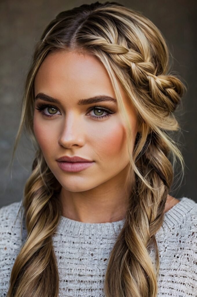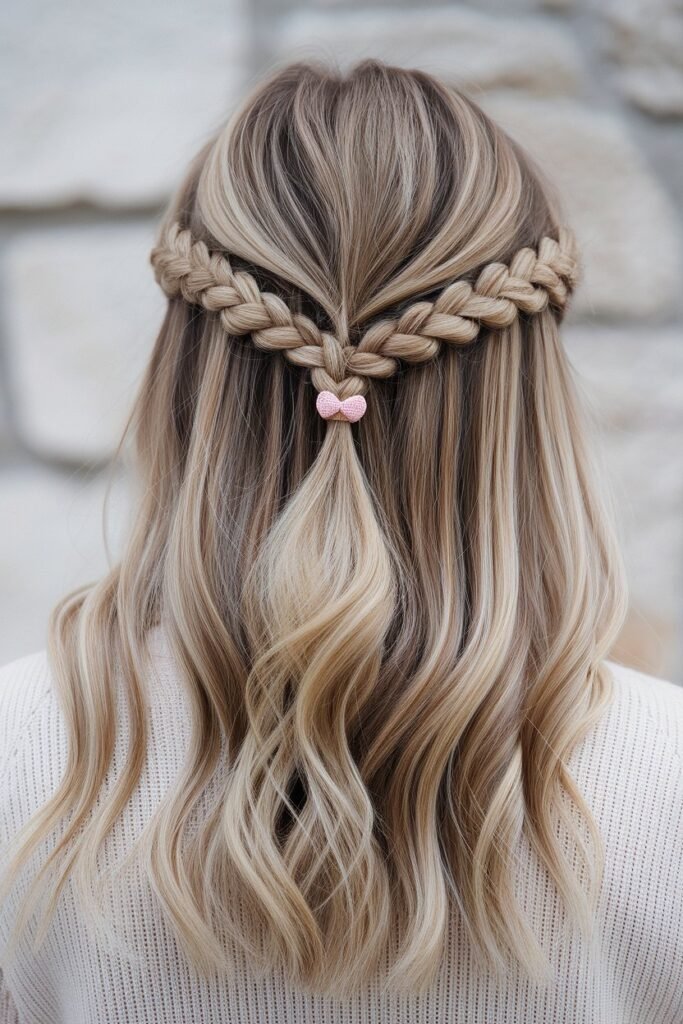 This look works best on straight or slightly wavy hair, as the braids need to be neat and defined. It’s an adorable and creative way to express personality through your hairstyle while keeping things light and fun. Add a cute hair accessory like a bow or clip at the back for a little extra flair. Half-up heart braids are an easy way to create an eye-catching, playful style that’s perfect for social media posts or casual outings.