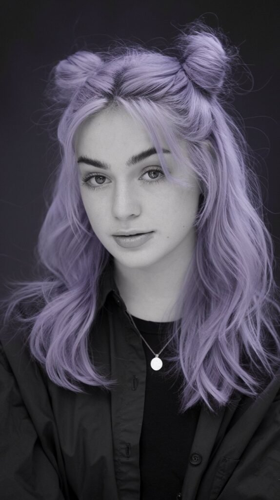 What’s great about this style is how customizable it is. You can keep the buns sleek and polished for a cleaner look or go for messy buns for a more carefree, playful vibe. Add glitter partings, butterfly clips, or scrunchies for that extra flair that pops on TikTok and Pinterest. Whether your hair is straight, curly, or textured, half-up space buns are a creative way to stand out while keeping things cute and practical.
