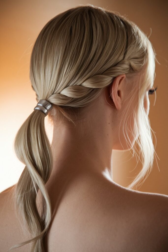 To elevate the look, add a metallic cuff or a sleek clip at the base of the ponytail for an extra touch of glamour. The rope twist adds texture and visual interest while maintaining a sleek, controlled look. This style is perfect for anyone aiming for a “clean-girl” aesthetic—chic, elegant, and effortlessly fashionable.