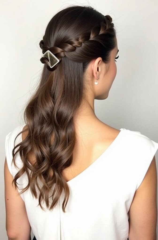 The twisted half-up hairstyle is one of the simplest yet most elegant options for everyday wear. This style involves twisting both front sections of your hair and securing them at the back with a stylish barrette or clip. It’s a sleek, minimal look that enhances the natural beauty of your hair without much effort, making it perfect for busy days when you still want to look put together. Whether you’re heading to work, running errands, or enjoying a date night, this style will never disappoint.