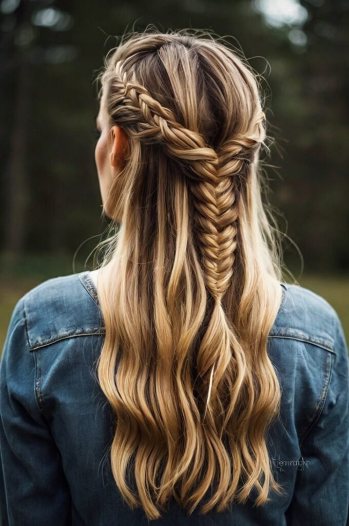 For a more effortless, laid-back vibe, you can gently loosen the braid to add volume and softness. This makes the look feel more relaxed and free-spirited while still maintaining a sophisticated edge. The half-up fishtail braid is versatile enough to wear for both formal events or casual hangouts, offering the perfect balance between intricate design and effortless beauty.