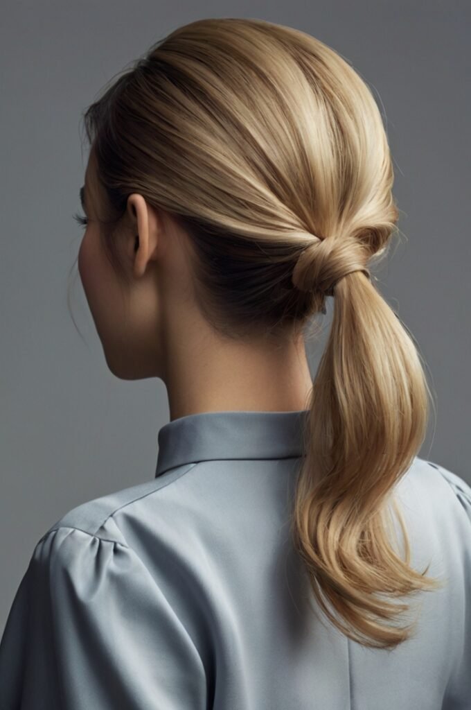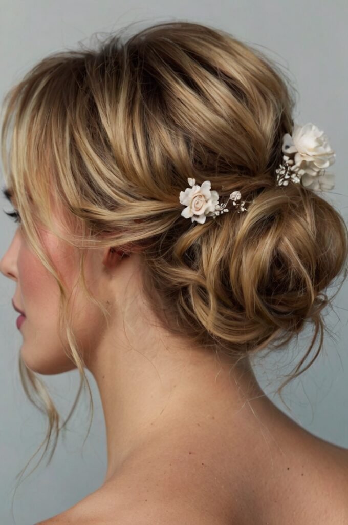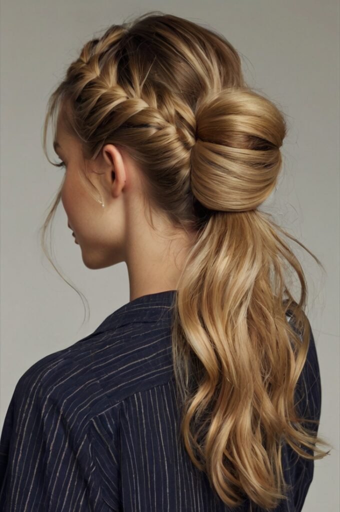 A low ponytail styled with gentle waves offers an effortlessly elegant look. It’s often accessorized with ribbons or clips for a touch of personality.