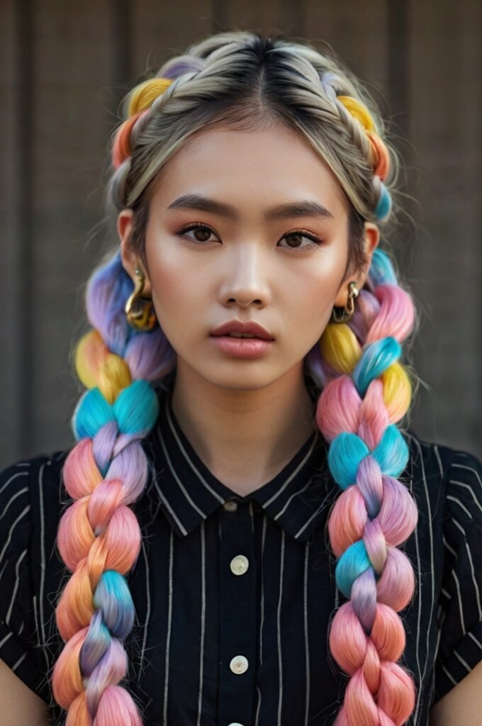 Bubble braids are trendy and fun, often spotted on K-pop idols. They work well with medium to long hair and add a playful touch to any outfit.