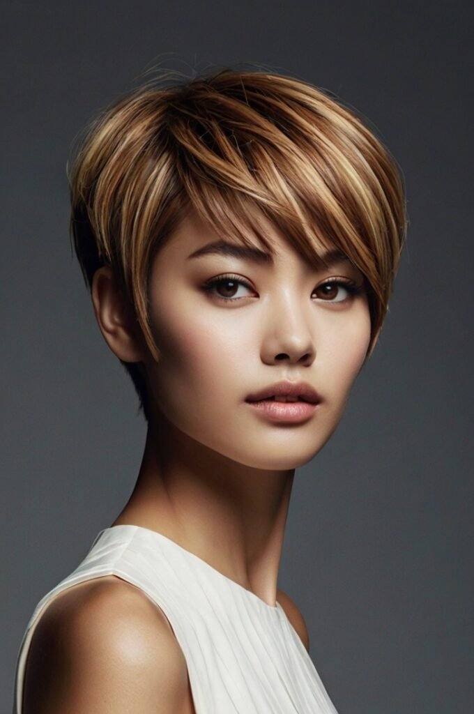 For those who prefer shorter hair, a pixie cut with side-swept bangs is an edgy yet feminine option.