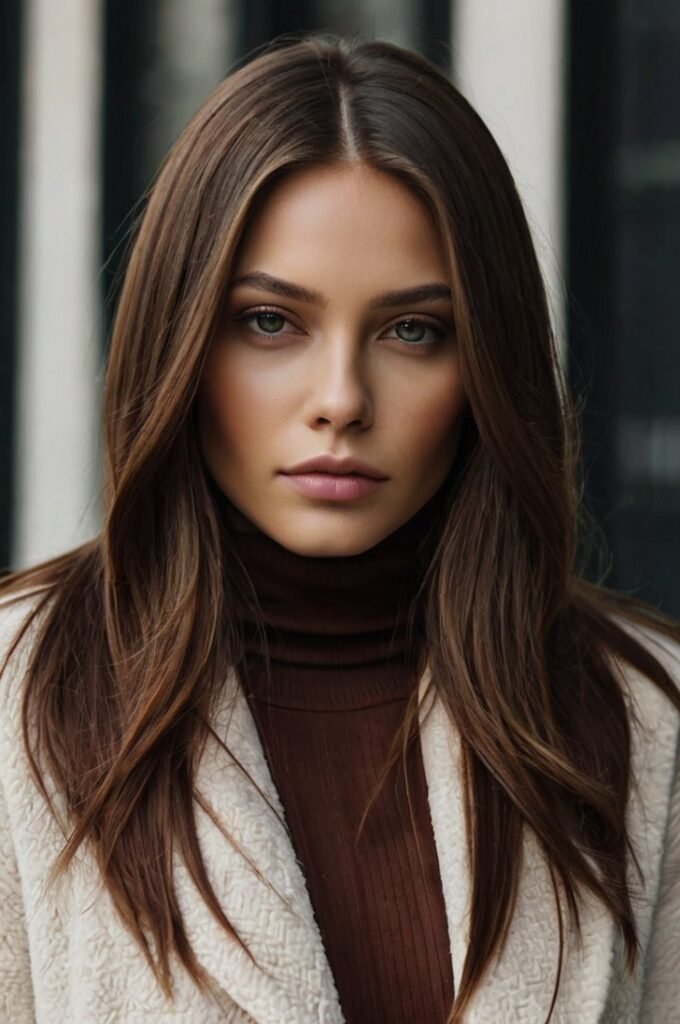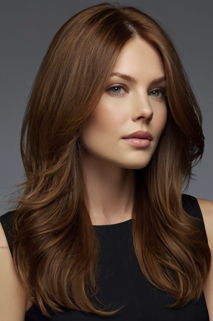 This cut features seamless, blended layers that create natural movement without obvious cuts. It’s a great option for fine, straight hair that needs volume without sacrificing length. Works well with deep auburn or dark chocolate shades for an elegant, sophisticated look.