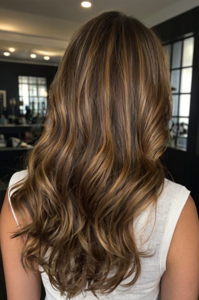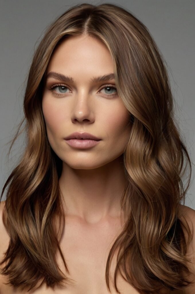 A medium-length layered cut that falls between the collarbone and shoulders. This style offers volume without making the hair look too thin. It’s an effortless, low-maintenance choice that looks amazing with sleek styling or light waves. Best paired with warm chestnut brown or bronde highlights for a modern finish.