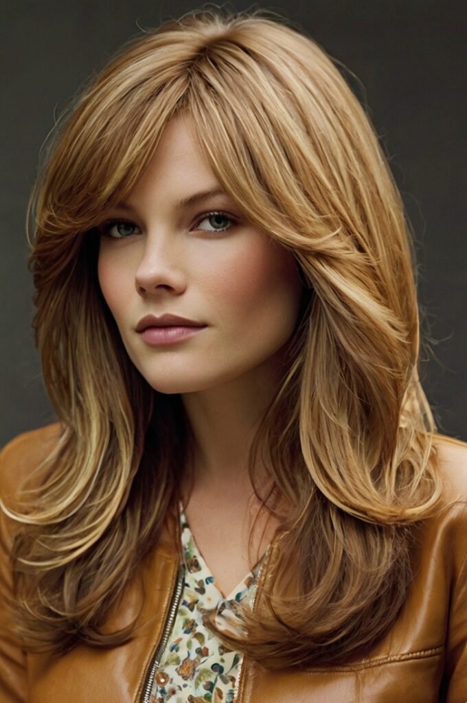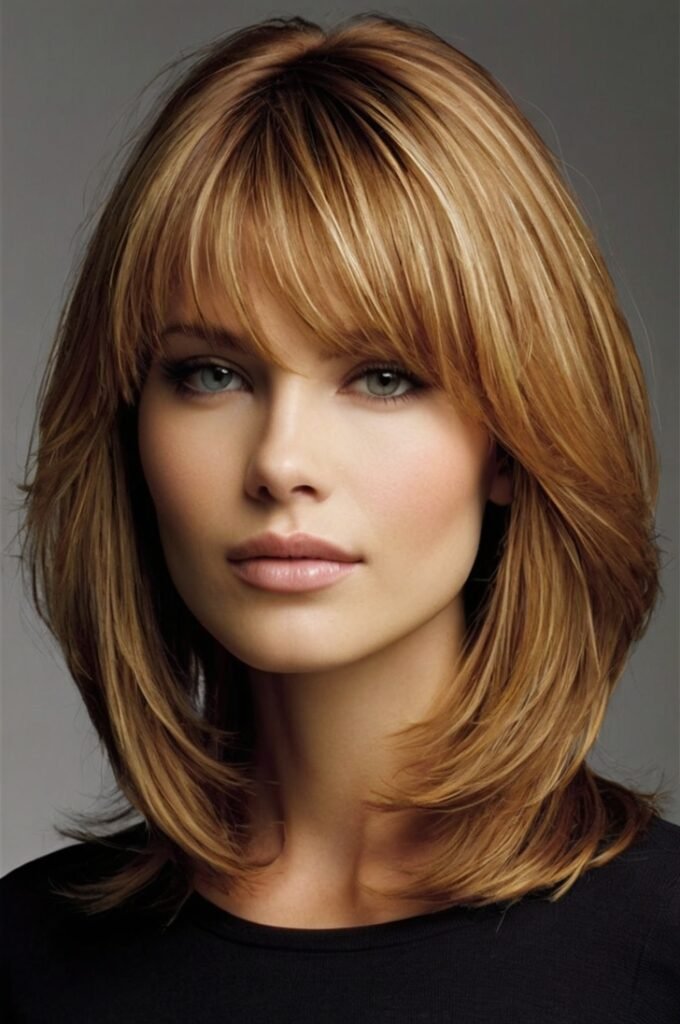 This cut features soft layers around the face, enhancing cheekbones and jawlines. It’s perfect for straight hair, adding depth without making the hair look too choppy. Works beautifully with curtain bangs for a trendy touch. Opt for warm caramel or honey blonde highlights to bring out the layers even more.