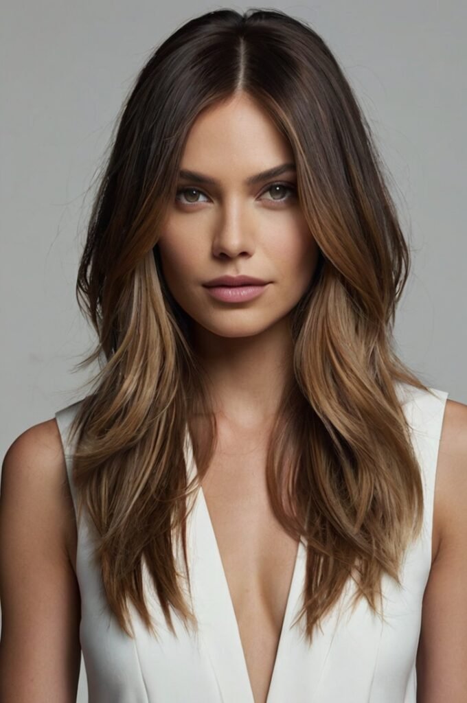 A layered cut that pairs beautifully with bold balayage transitions, such as dark roots fading into icy blonde or rich cinnamon brown. The layers enhance the color contrast, giving straight hair more dimension. Perfect for those who want a trendy yet natural-looking style.