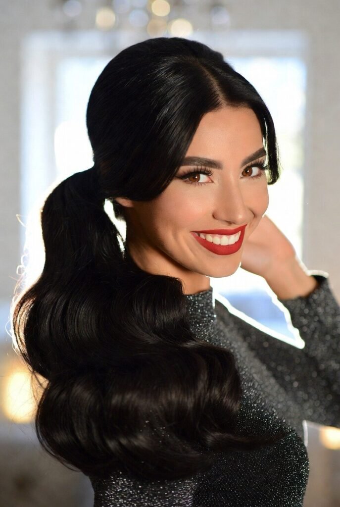- Wet-Look Sculpted Waves – Glossy, slicked-back roots into defined S-waves; looks expensive and stays perfect all night.