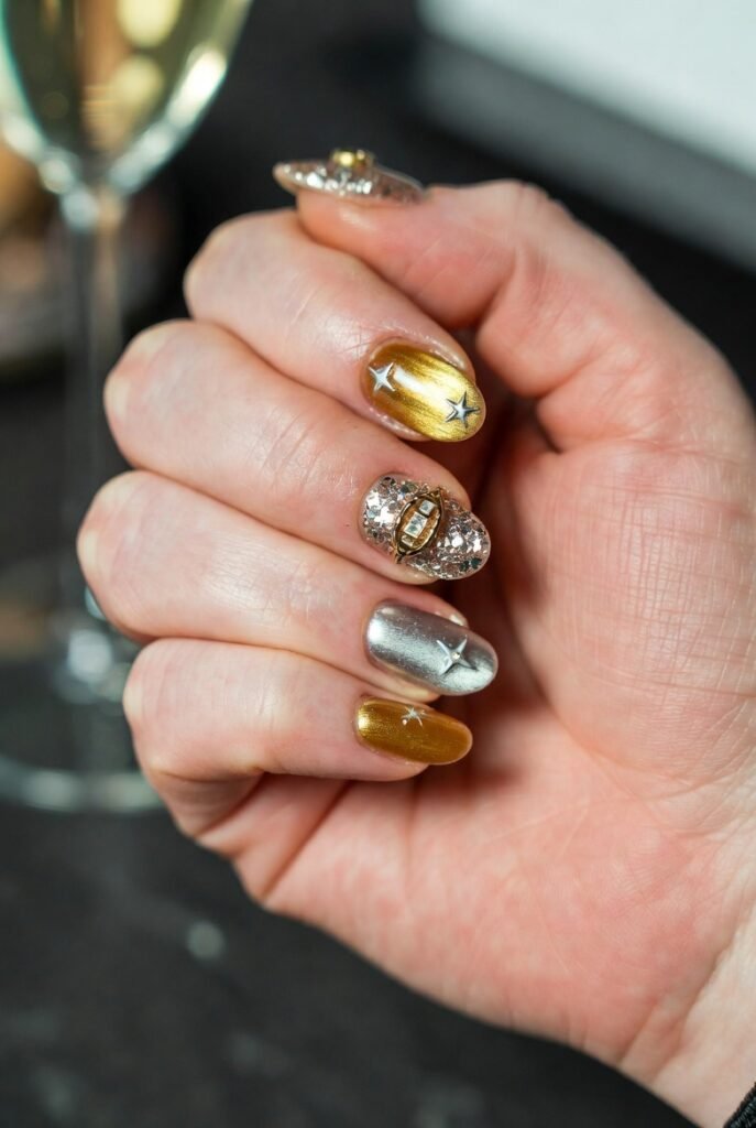No other night gives you permission to go this extra. Christmas nails are sweet; NYE nails are pure celebration. Glitter reflects champagne bubbles, metallics echo fireworks, and midnight hues channel fresh-start energy. A great NYE manicure also photographs beautifully under every lighting condition: candlelight, strobe, phone flash. Plus, it’s the one decoration that travels with you from dinner to dance floor to January 1 brunch.