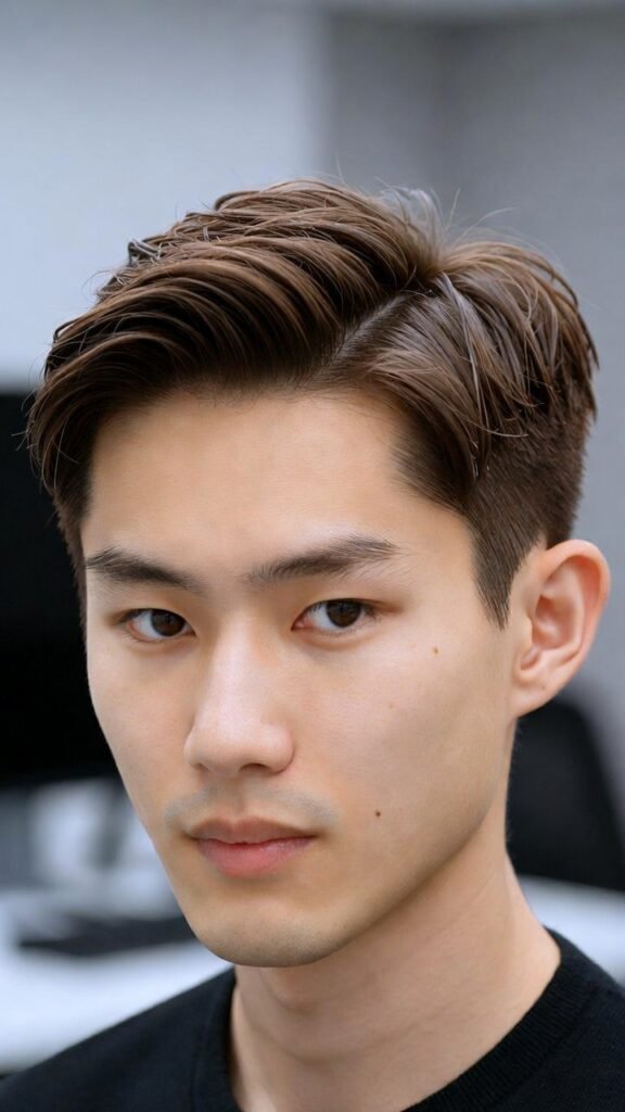 - Short Bob with Deep Side Part – Sleek bob with dramatic side part.