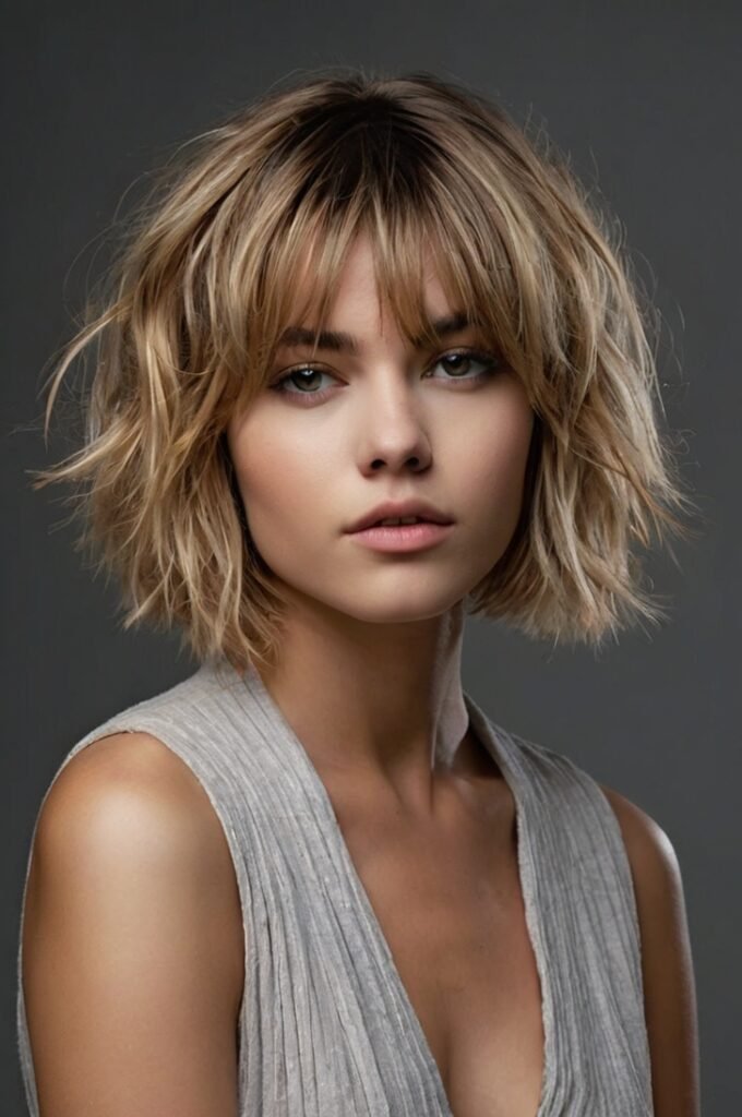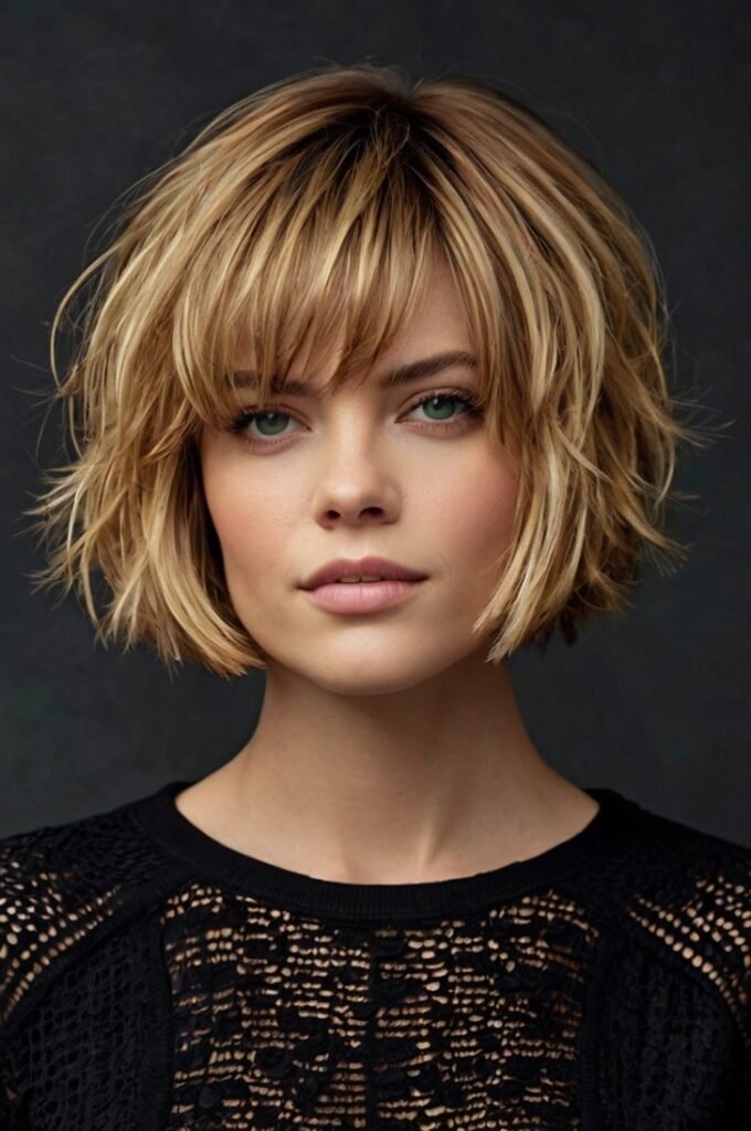 The shaggy razor cut bob is all about a carefree, lived-in look. This style features plenty of layers that create a tousled effect, making it a trendy choice for individuals who want a modern, youthful vibe with minimal effort.