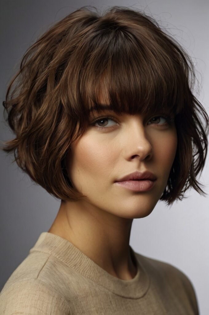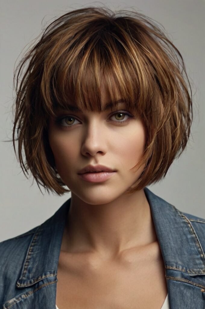 The choppy razor cut bob is all about texture and personality. This style features uneven, jagged layers that give a tousled, “just rolled out of bed” look. It’s perfect for those who embrace a carefree and rebellious aesthetic without compromising on style.