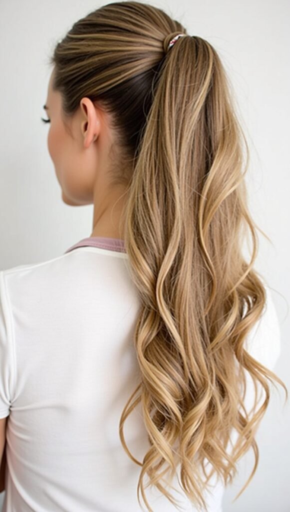 Combine polished sleekness with soft, natural texture. Start with a smooth base, then let the ponytail cascade in loose, defined waves for a romantic yet effortless vibe. You can create the waves with a curling wand or braid the hair overnight for heatless results. This look offers the best of both worlds — structured yet relaxed.