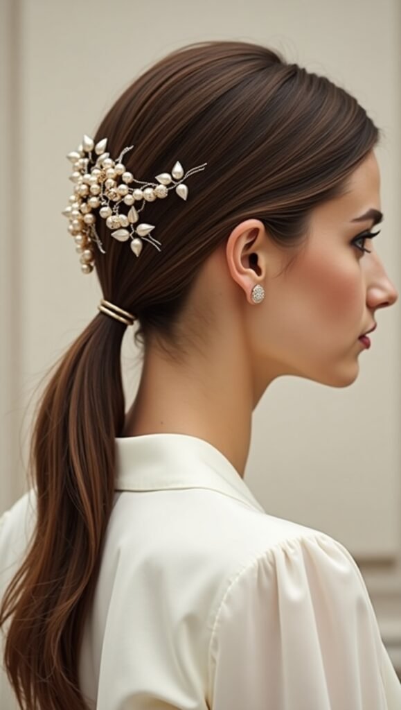 12. Sleek Ponytail with Accessories