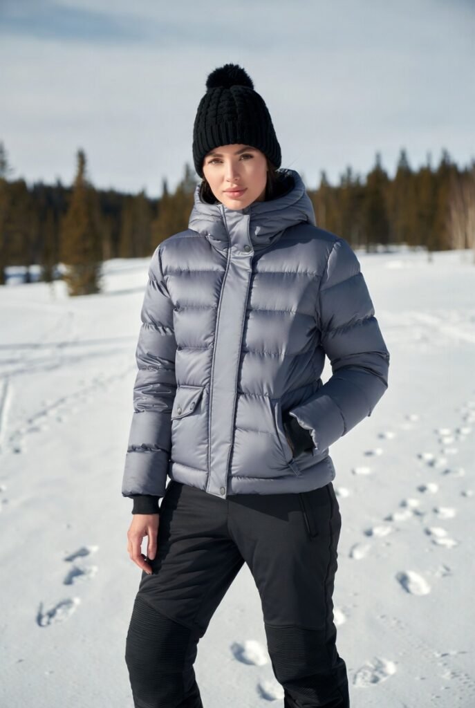 - Metallic Shine — Silver or gold-accented puffer with neutral pants and sleek helmet for futuristic flair.