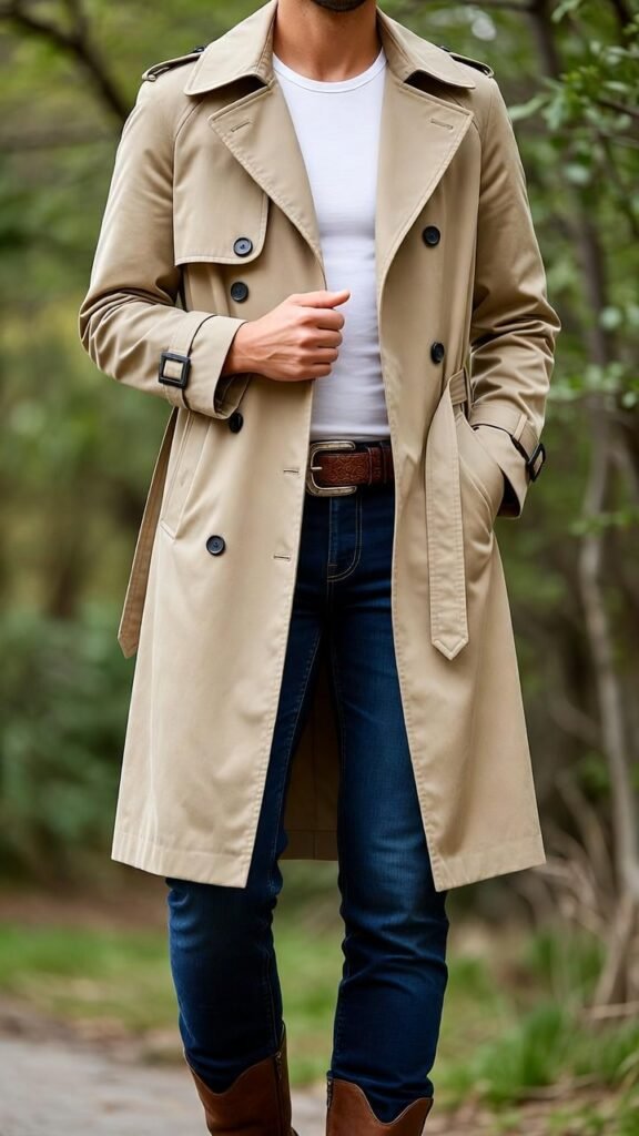 - Asymmetrical Trench + Cargo Pants + Combat Boots – Dramatic trench with utilitarian pants.