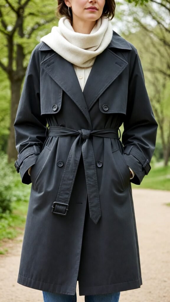 - Layer: trench over blazers, dresses, or sweaters for dimension.