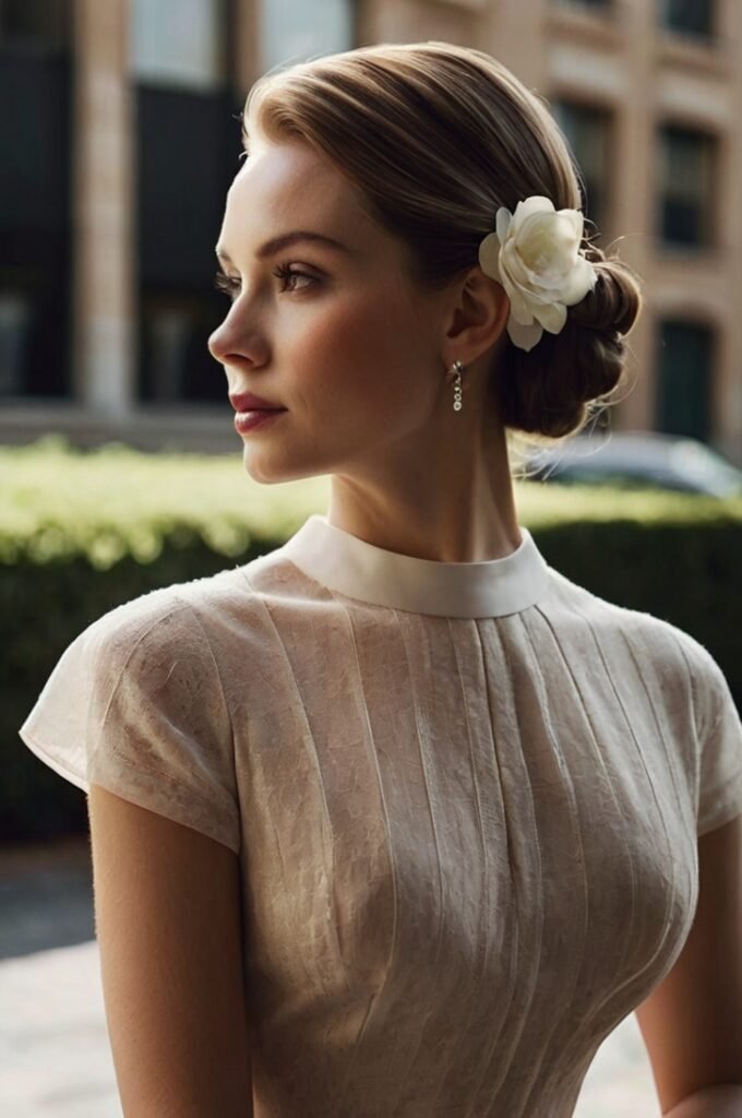 The Sleek Low Chignon is a timeless and elegant vintage hairstyle, often seen in classic Hollywood films. This simple yet sophisticated look features a low bun that is smooth and polished, perfect for a formal event or a refined, everyday look. The beauty of the low chignon lies in its simplicity, creating a chic and graceful silhouette that never goes out of style.