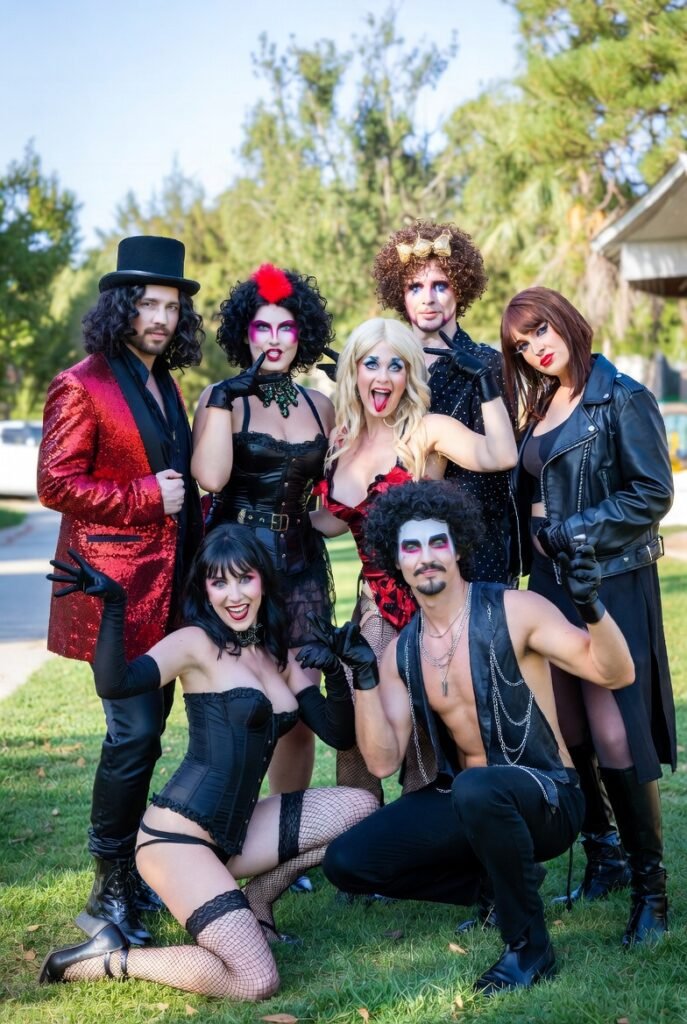 - Gender-Swapped Frank – Women in corset and heels, men in pearls and stockings—RHPS loves flipping norms.