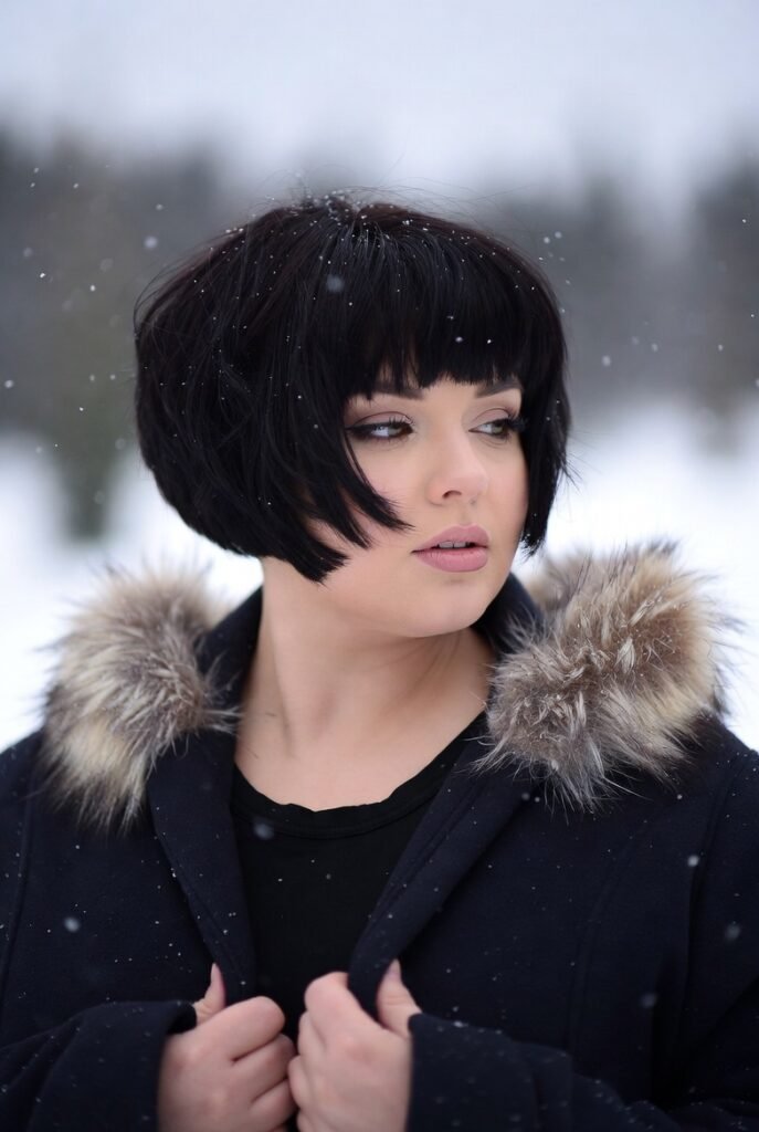 When styling a blunt bob, the key is to keep the ends smooth and straight. Use a flat iron or blow dryer with a concentrator nozzle to achieve a sleek, frizz-free finish. A small amount of smoothing serum or glossing cream can help tame flyaways and enhance shine. For a more textured look, try incorporating subtle waves or bends with a straightening iron. Overall, the blunt bob with straight ends is a timeless and versatile cut that can elevate any plus-size woman’s winter style.